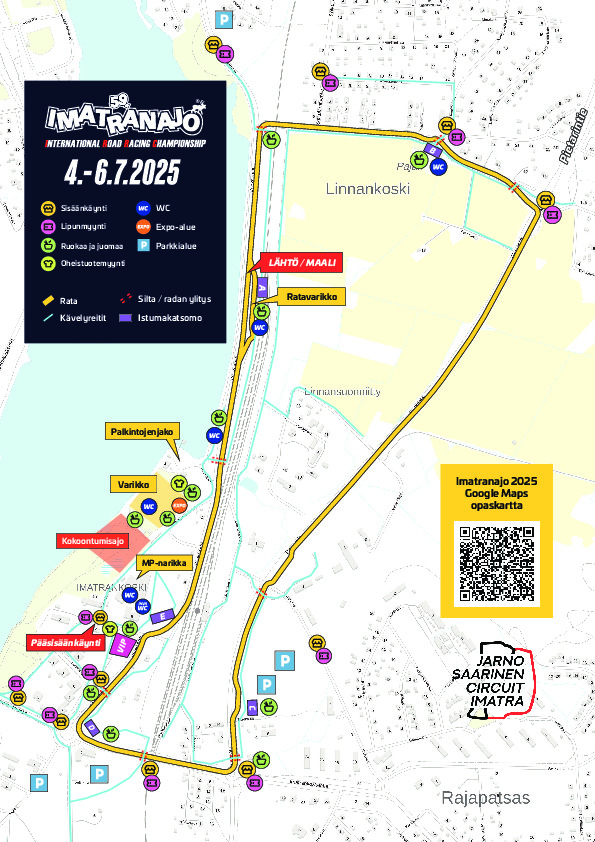 Jarno Saarinen Circuit Imatra sijaitsee vain 600 metriä kaupungin keskustasta, Vuoksen itärannalla.